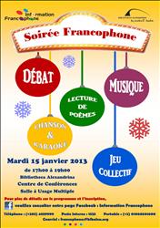 La Bibliothèque Francophone de la BA invite son public à assister le Mardi 15 janvier 2013 à une soirée francophone mêlant culture et amusement.