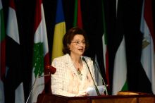 وفي كلمتها أكدت السيدة سوزان مبارك على أن تحقيق السلام الشامل يتطلب ترسيخ مبادئ العدالة والديمقراطية وضرورة أن تلعب المرأة دورها المتوقع في ترسيخ السلم الحقيقي. كما دعت السيدة سوزان مبارك إلى نشر ثقافة السلام التي تقضي على التحيز والتمييز، وطالبت بأن تسود روح التسامح بين البشر من أجل رفاهية الأمم واستقرار الشعوب، واستعادة التوازن القائم علي العدل الداعم للسلام.كما أعربت عن يقينها في إن المستقبل القريب سوف ينعم بالسلام مادام هناك زعامات قادرة على خلق هذا المناخ.