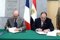 Alexandrie, 24 février 2005—Dans le cadre de la coopération entre la Bibliotheca Alexandrina et les bibliothèques d’autres villes, Dr. Ismail Serageldin, directeur de la BA et M. Jacques Rocca-Serra, adjoint au Maire de Marseille, délégué aux Relations Internationales, au Partenariat avec les Pays Méditerranéens ont signé un accord de coopération entre la Bibliothèque municipale de Marseille et la Bibliotheca Alexandrina, le 23 février. Le consul général de France à Alexandrie M. Louis Blin et l’ambassadeur Taher Khalifa qui dirige les Relations Internationales à la Bibliothèque étaient présents lors de la signature de l’accord.