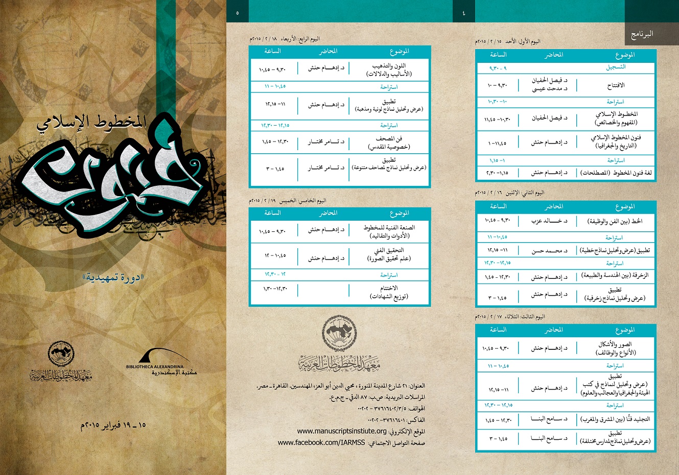 Le Centre des Manuscrits de la BA organise, en coopération avec l’Institut des Manuscrits Arabes, du 15 au 19 février 2015 une formation aux arts du manuscrit islamique.