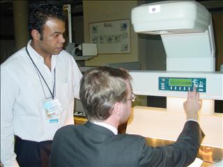 Participant adjusting scanner settings